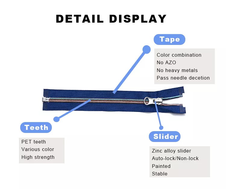 TRC oferuje ponadto różnorodne niestandardowe opcje kolorów i usługi dostosowywania OEM/ODM, dostosowując kolor zębów, kolor taśmy, długość i styl suwaka do specyfikacji klienta. Zapewnia to elastyczne rozwiązania dla globalnych marek odzieży i akcesoriów.