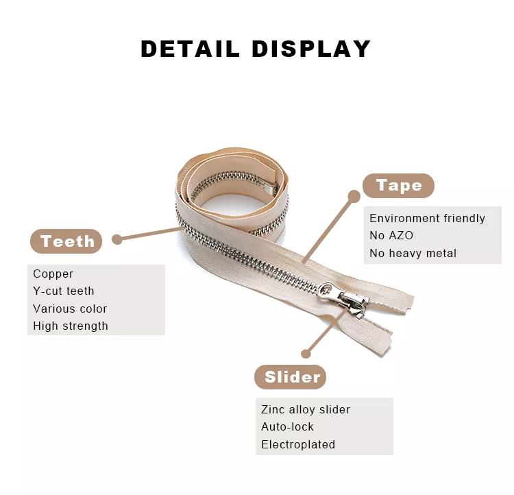 Metalowy zamek błyskawiczny TRC wykonany jest głównie ze stopów nadających się do recyklingu i włókien poliestrowych, co skutecznie równoważy doskonałą trwałość, gładkość i odpowiedzialność za środowisko. Produkt wytwarzany jest ściśle według międzynarodowych standardów środowiskowych, znacznie zmniejszając zużycie zasobów i ślad środowiskowy, co czyni go niezawodną gwarancją budowy zielonego łańcucha dostaw i wdrożenia strategii zrównoważonego rozwoju.